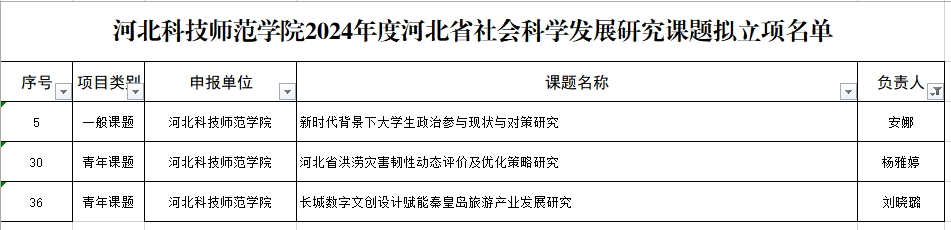 各位老师:2024年度河北省社会科学发展研究课题经申报受理、通讯初评、会议评审、省社科院党组议定等程序,公司有3项课题拟予立项(名单见附件)。按照《关于开展2024年度河北省社会科学发展研究课题立项结果公示的通知》要求,现对拟立项课题予以公示,公示期为5个工作日。立项名单如下:
