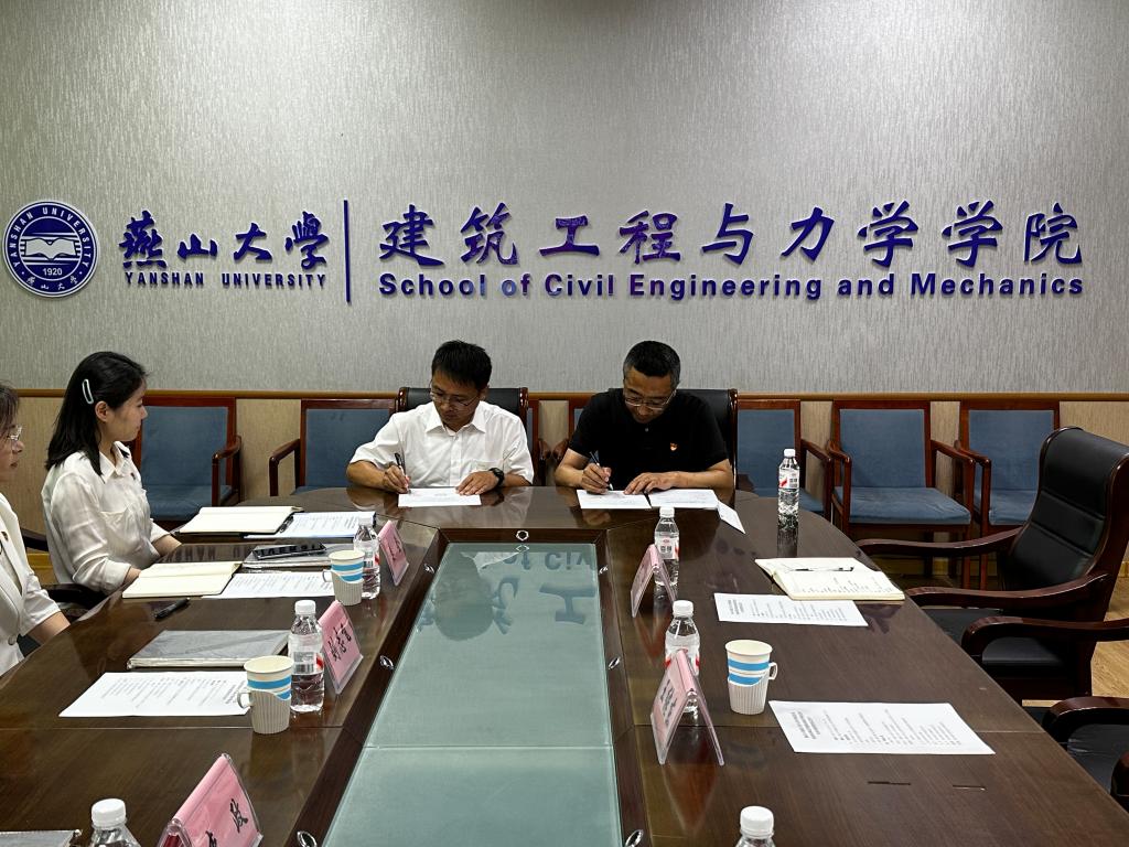 2025年6月20日,公司党委与燕山大学建筑工程与力学公司党委党建共建签约仪式在燕山大学建筑工程与力学公司办公楼会议室举行。两公司党委书记、经理、党委副书记、员工党务负责人、党委专职组织员、分团委书记出席签约仪式。