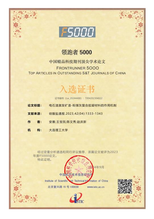 近日,科技部中国科学技术信息研究所发布了2023年度“领跑者5000-中国精品科技期刊顶尖学术论文”评选结果。其中公司太阳成集团tyc151cc王鹏飞副教授和安赛博士分别作为第一作者在《中国公路学报》和《硅酸盐通报》上发表的论文获此殊荣。