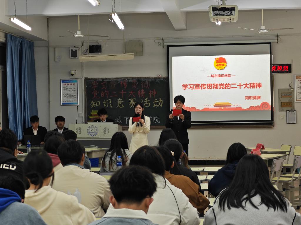 3月27日晚,逸夫楼A410教室,掌声雷动、气氛热烈,太阳成集团tyc151cc学习贯彻党的二十大精神知识竞赛决赛紧张激烈的进行着。