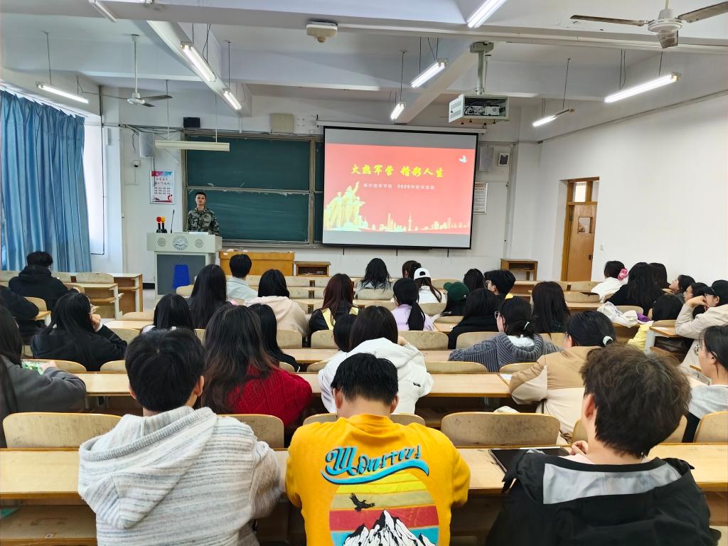 活动邀请2024级退役士兵张永彬为大家宣讲。张永彬以自身经历为切入点,进行了三个方面的交流。首先,他带领大家一同观看了 2025 年征兵公益视频,用热血澎湃的精彩画面点燃了同学们的报国之志,其次,讲述了参军入伍的一系列政策法规、优惠政策,最后,分享了自己的入伍历程、成长蜕变,让同学们对部队生活有了更为直观、深刻的认知。